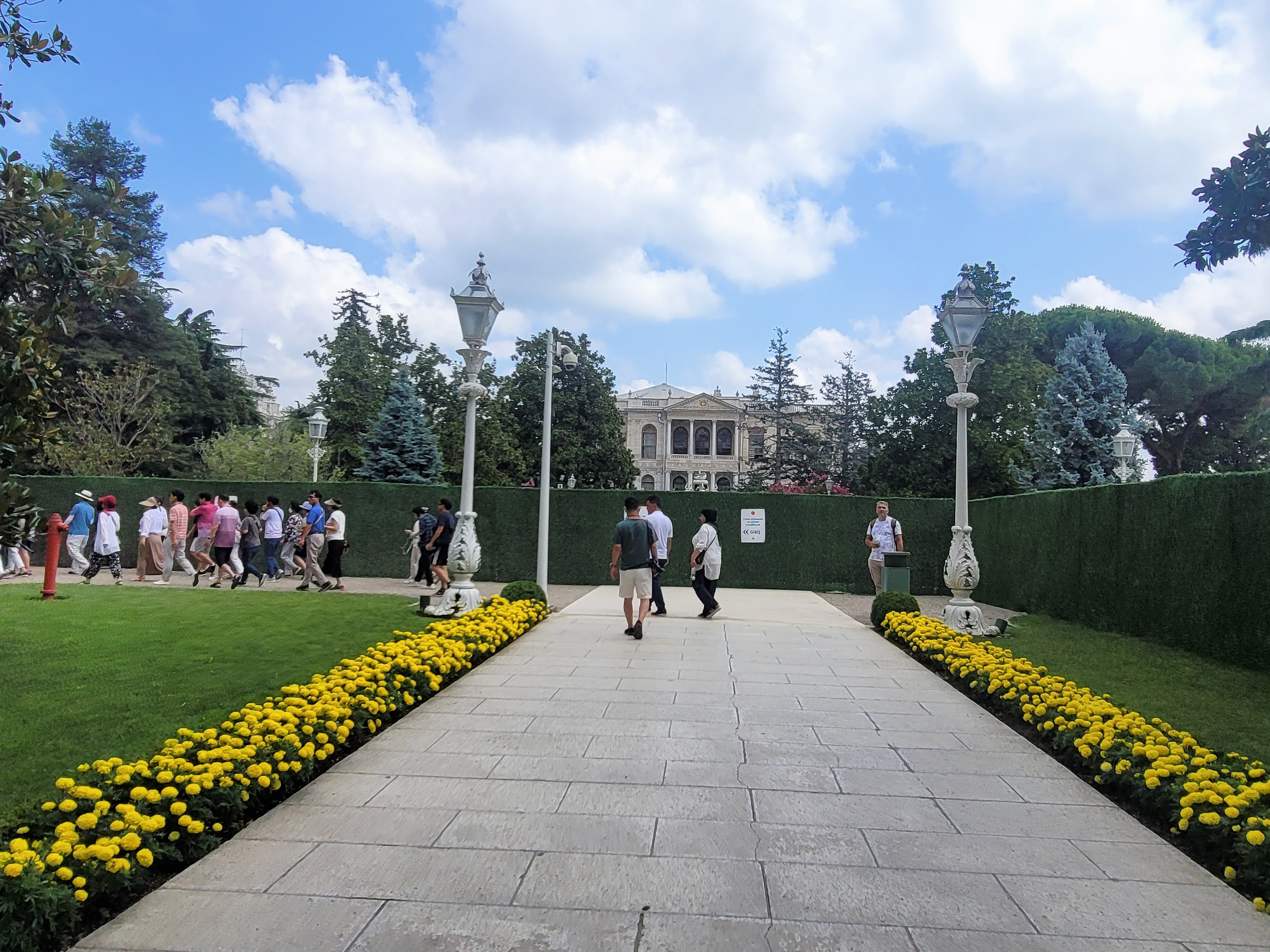 복잡한 술탄아흐멧 광장을 지나 보스포로스 해협 쪽으로 이동하면 우리의 시선을 사로잡는 궁전이 있는데, 바로 돌마바흐체 궁전 (Dolmabahçe Sarayı)입니다. 돌마바흐체(Dolmabahçe)의 ‘돌마(Dolma)’는 터키어로 “꽉찼다”는 의미라고 하며, 해변이었던 자리를 메우고 정원을 조성하였다고 해서 “가득찬 정원”이란 의미의 돌마바흐체(Dolmabahçe)라 불리게 되었다고 합니다.